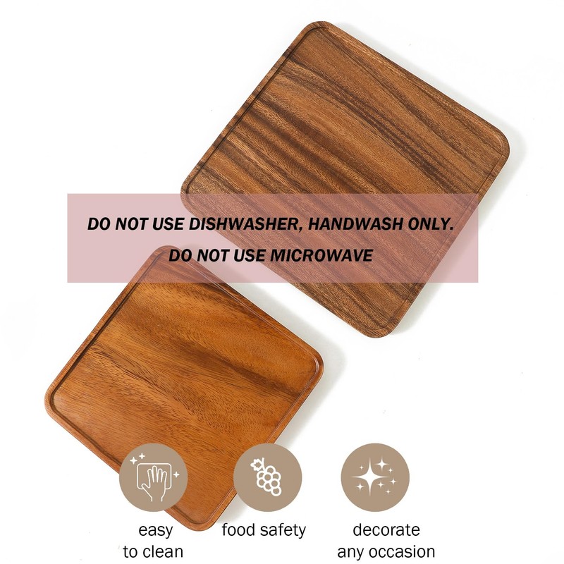 Bamxzoo Premium Quality Durable Walnut Square Wooden Plates 10"-100% Natural Wood Serving Plate for Coffee Table-Great Home Decor Platter for Breakfast & Dining