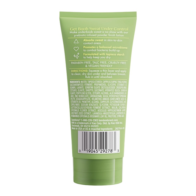 Ban Underboob Sweat Shield Stay Dry Lotion, Safe for Sensitive Skin, Free of Aluminum, Baking Soda & Talc, Soothing Aloe & Calendula, Unscented, 2.5 Oz