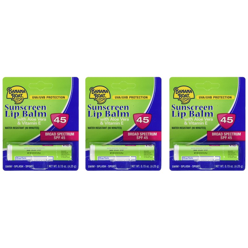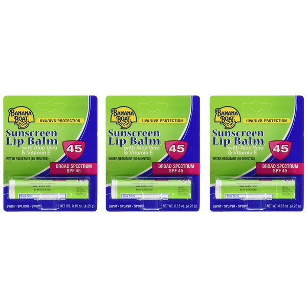 Banana Boat Aloe Vera Sunscreen Lip Balm with Vitamin E SPF 45 3-Pack