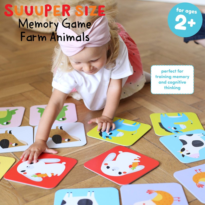 Banana Panda Suuuper Size Memory Game - Farm Animals - Classic Toddler Game Includes 24 Extra-Large Cards - Play Matching Games or Use as Flashcards, for Toddlers and Little Kids Ages 2-4 Years