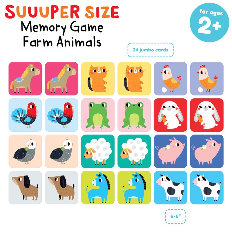 Banana Panda Suuuper Size Memory Game - Farm Animals - Classic Toddler Game Includes 24 Extra-Large Cards - Play Matching Games or Use as Flashcards, for Toddlers and Little Kids Ages 2-4 Years