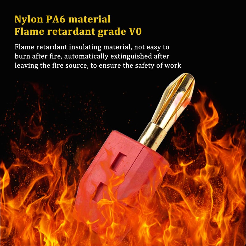 • High temperature resistance: high current banana plug shell made of nylon PA6, fireproof, temperature resistant, not easy to ignite the wire, flame retardant grade V0, long service life.