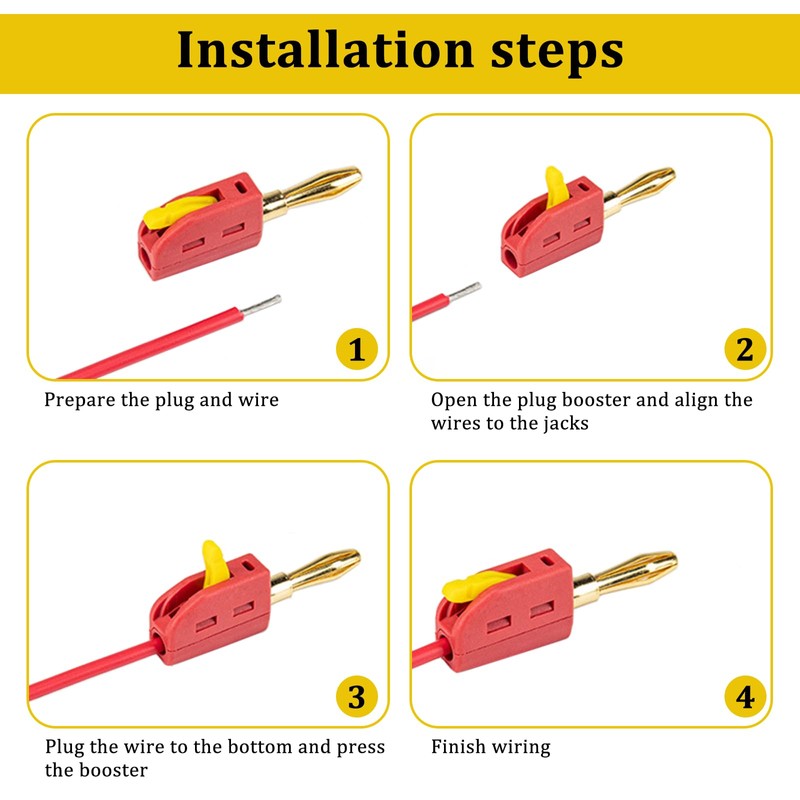 • How to use: prepare the cable, open the banana plug button, align it with the socket, and plug, press the button to complete wiring.