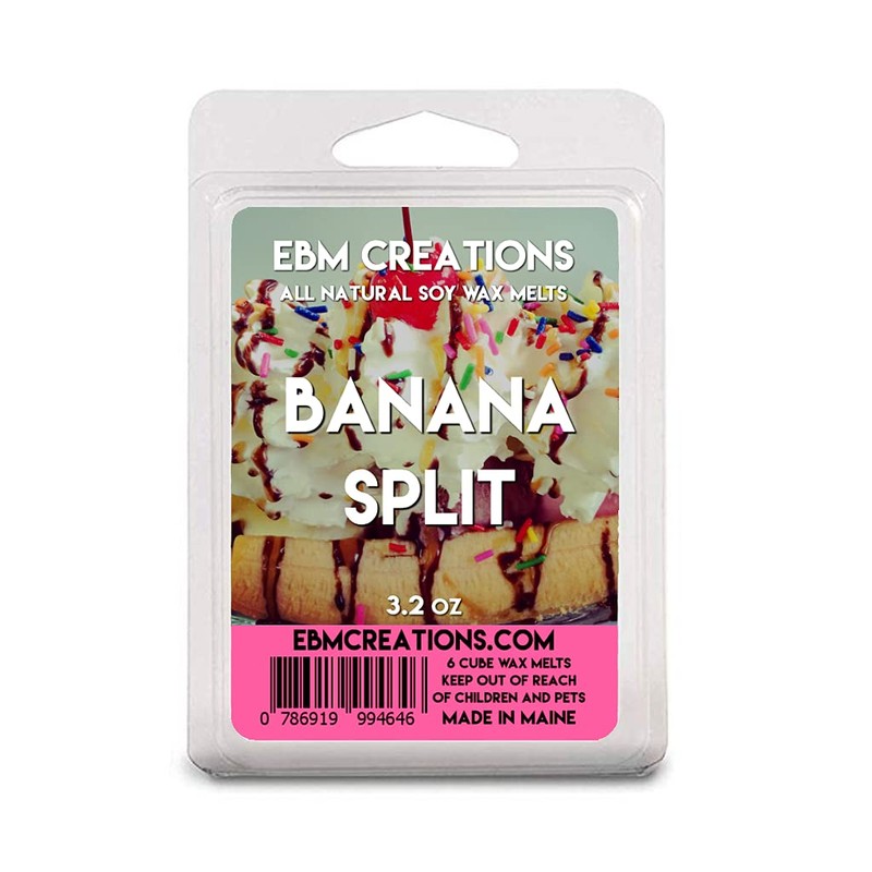 Banana Split Soy Wax Melts - 3.2oz, 6 Cube Clamshell, All Natural, Highly Scented, Long-Lasting Aroma, Premium Quality, Handmade, Non-Toxic, Eco-Friendly