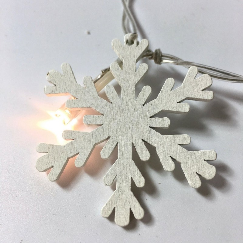 LED Christmas string light features four pine cones, 4 snowflakes and 20 berries. The light is 62" long with 12 LED lights and has a 24" lead in. Powered by 2 AA batteries, not included.