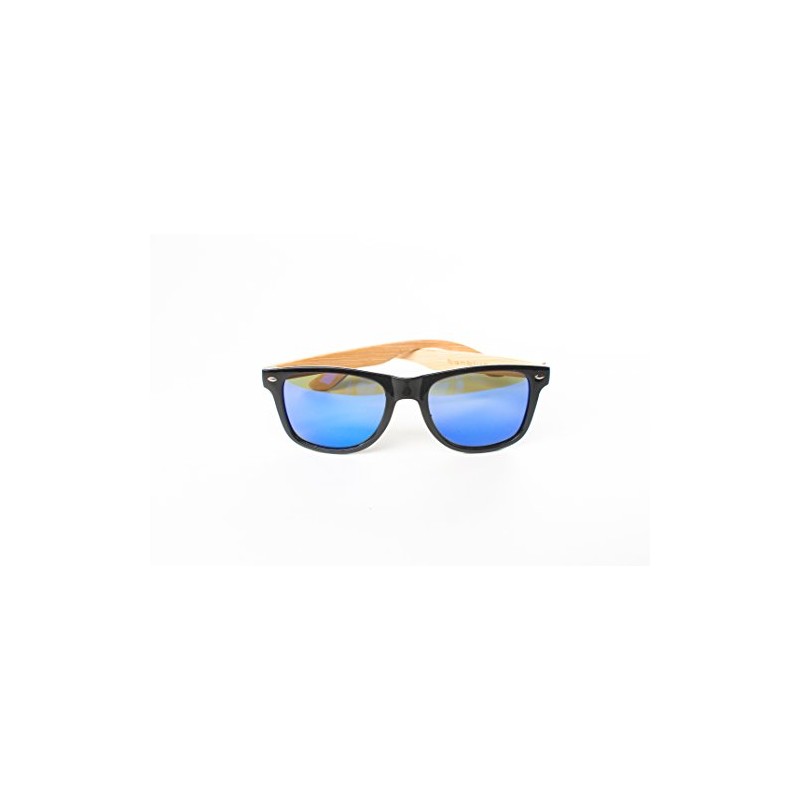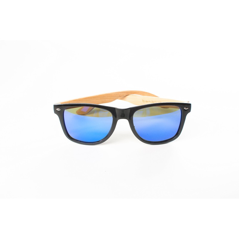 banblue Bamboo Sunglasses (Black, Blue Mirrored)