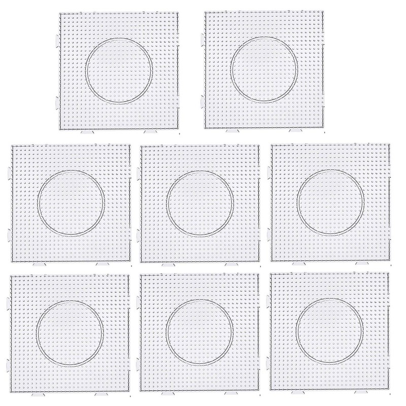 Fuse Beads Boards Plastic PegBoards Kits Square Large Clear Suitable for Diameter 5 mm Kids Craft Beads Square Feature: Made of EVA environmental plastic, durable PegBoards, not easy broken, enjoy your DIY time with your family. Cultivate children's operation ability, coordination ability, color recognition ability and three-dimensional thinking mode, conducive to children's creativity and imagination. Specifications: Size: 14.5 x 14.5 cm/ 5.8 x 5.8 inch Suitable: Diameter 5 mm Kids Craft Beads Material: plastic Color: White Note: 1\. Don't over ironing. 2\. Lock the tabs to prevent the boards from tilting. 3\. Make sure the beans are the same height, thanks. 4\. Don't take the beans off immediately after scalding, and press them with a heavy object, so that the finished products and templates of beans are not easy todeform. 5\. If you don't pay attention to the method of use when you use it and it causes bending, please press it with a heavy object when you iron and heat it again, and it will recover, thanks.