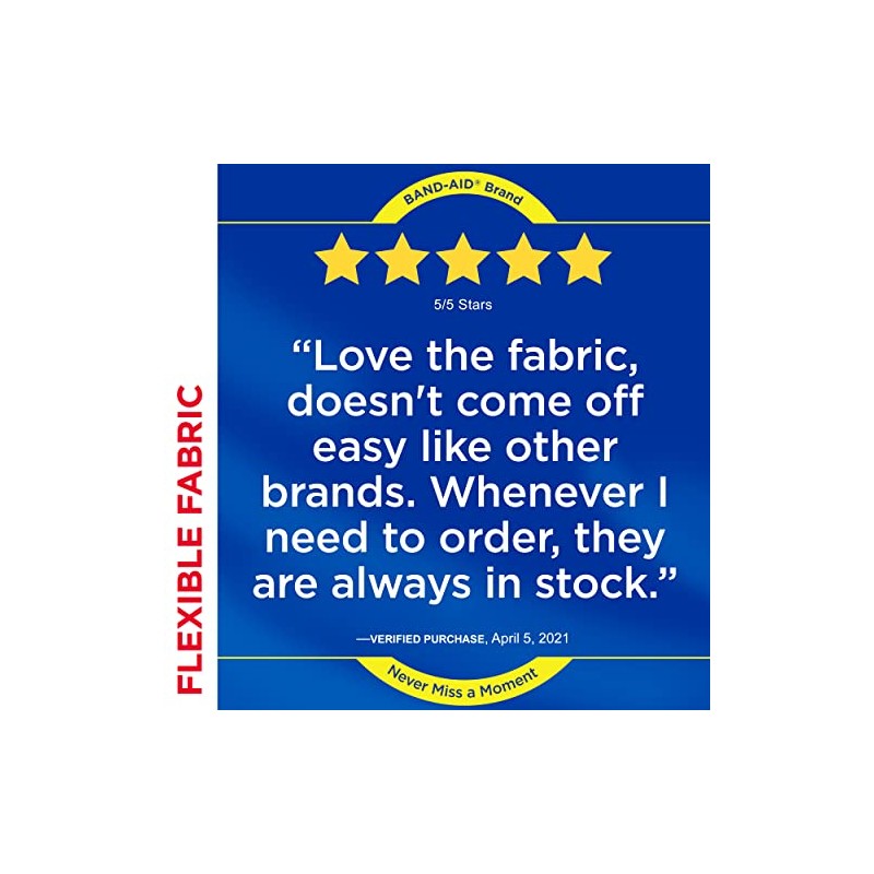 - These Band-Aid Brand Flexible Fabric adhesive bandages stay on for up to 24 hours and feature a unique Hurt-Free Pad that won't stick to the wound as they wick away blood and fluids, allowing for gentle removal