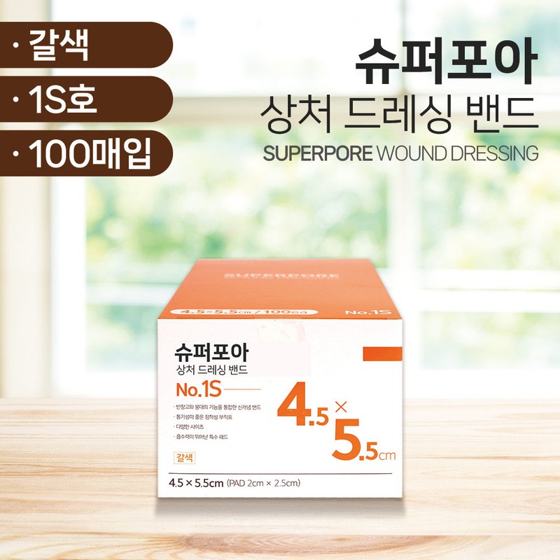 Band Gold Super Poa No. 1s Brown (4.5x5.5cm) 100 sheets Large capacity sterilized dressing band for hospitals Excellent breathability / 밴드골드 슈퍼포아 1s호 갈색(4.5x5.5cm) 100매입 병원용 대용량 멸균형 드레싱밴드 붕대 반창고 통기성우수