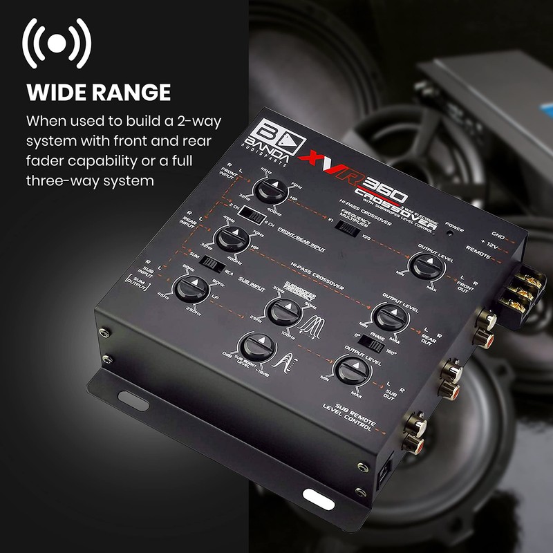 - WIDE RANGE: When used to build a 2-way system with front and rear fader capability or a full three-way system, it allows you to choose from a wide range of crossover points between the front, rear and subwoofer outputs