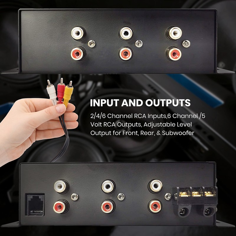 - INPUTS AND OUTPUTS : 2/4/6 Channel RCA Inputs,6 Channel /5 Volt RCA Outputs, Adjustable Level Output for Front, Rear, & Subwoofer, Adjustable High & Low Pass Crossover w/ Frequency Multiplier Non Fade Low Pass Output Subwoofer Bass Boost Control