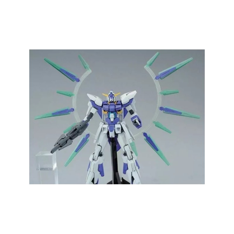 Based on the Mobile Suit Gundam AGE anime, this Gundam AGE-FX model kit is in the 1/144 scale and becomes a fully articulated figure once built. The kit includes a clear ring display stand that allows effect parts to be displayed in different positions. The AGE-FX also has a removable Core Fighter and comes armed with a large Bazooka and Rifle.