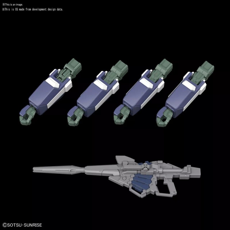 A variant of the Silver Bullet used in "Gundam NT", it features new molding to reflect the new head, backpack, and arm gimmicks. The exchange system mechanism which allows the machine to switch out the faulty arm from Beam Magnum use has been faithfully recreated and includes 4 additional arm units. Runner x 14, sticker, instruction manual.