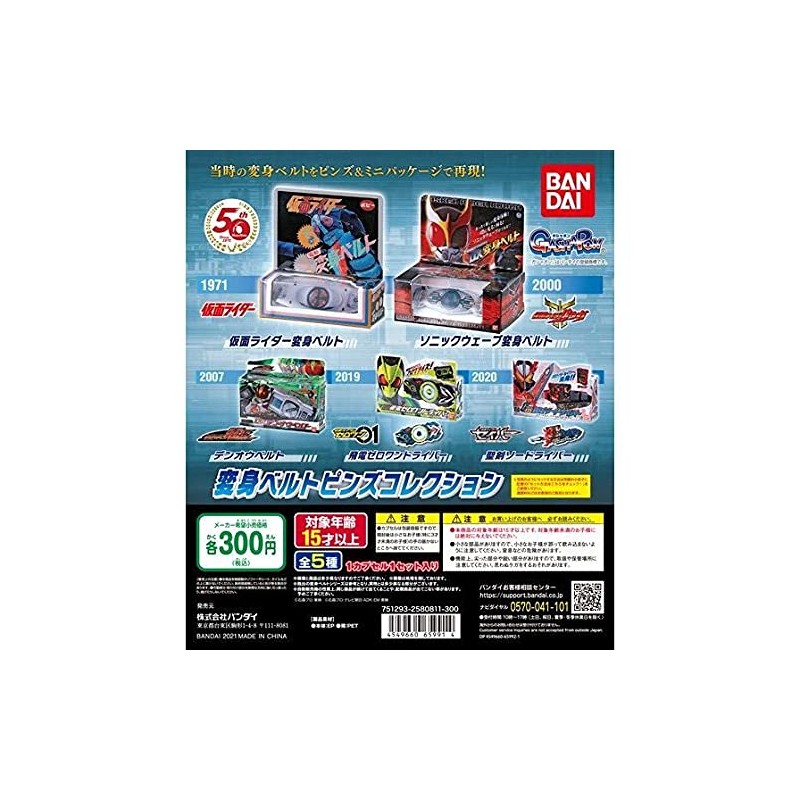 Bandai Kamen Rider Series Transformation Belt Pins Collection (Full Set of 5), Capsule Toy