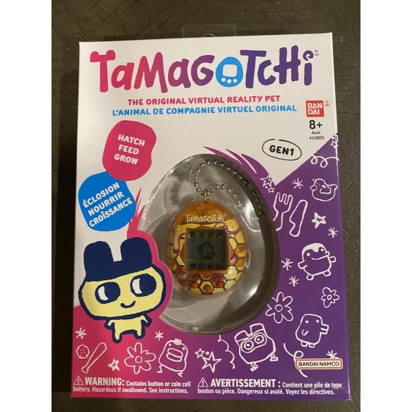 :The Original digital pet you loved in 1997 is back with a honey shell! With original programming, you feed it, clean up after it, take care of it and even discipline it if it's bothering you when it doesn't need you! Plus, you can play the Character game! How you take care of your Tamagotchi Original Honey Digital Pet and how you do in the game, determines which Adult Tamagotchi you'll get! Includes the "CR2032" battery and attaches to your bag so it goes everywhere! Ages 8 and up.