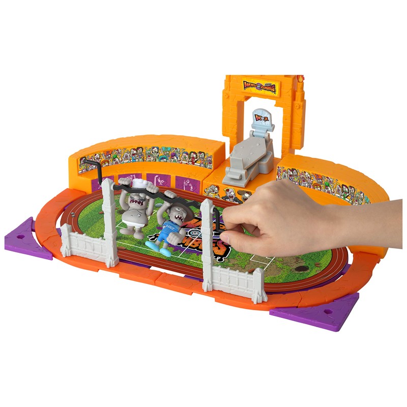 Bandai World of Zombies Deluxe Sports Stadium playset with 2 Exclusive Figures (U.S.Z. Cowboy and Zrance Zrench Chef) and 2 bio Cards (44221)