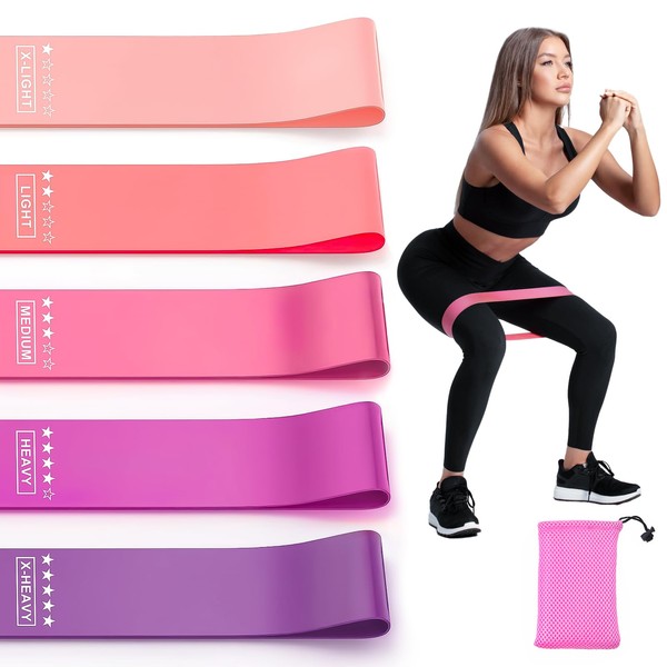Bandas de Resistencia, 5 Niveles Ligas de Resistencia Elásticas para Ejercicio, Resistance Bands Multifuncional, Látex 100% Natural con Bolsa, para Casa, Gym, Yoga, Pilates, Fisioterapia (Rosa)