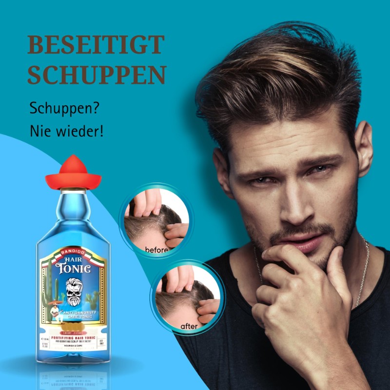 Anti-dandruff and soothing hair water: the BANDIDO hair tonic is a powerful hair water against hair loss and anti-dandruff hair tonic that nourishes irritated scalp and provides relief and comfort from the first use.