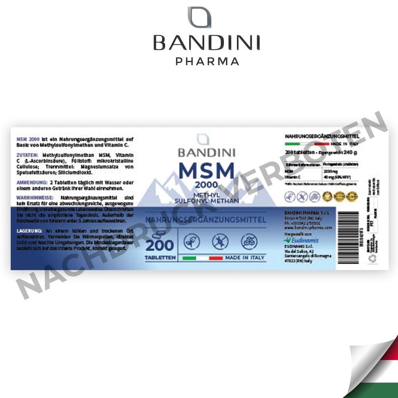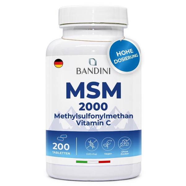 BANDINI Bandini? MSM - 2000mg with 40mg VITAMIN C per daily dose - More compact methylsulfonylmethane powder than capsules - Without magnesium stearate, high dosage, vegan, without additives, laboratory tested - 200 tabs