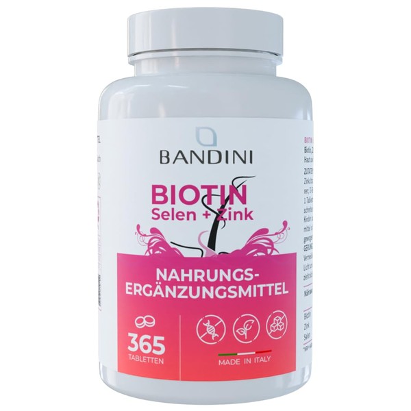 Bandini® Biotin Deluxe + Selenium + Zinc | 365 Tablets Annual Supply | For Skin - Nails - and Hair Growth | High Dosage, Laboratory Tested, No Additives, Vegan