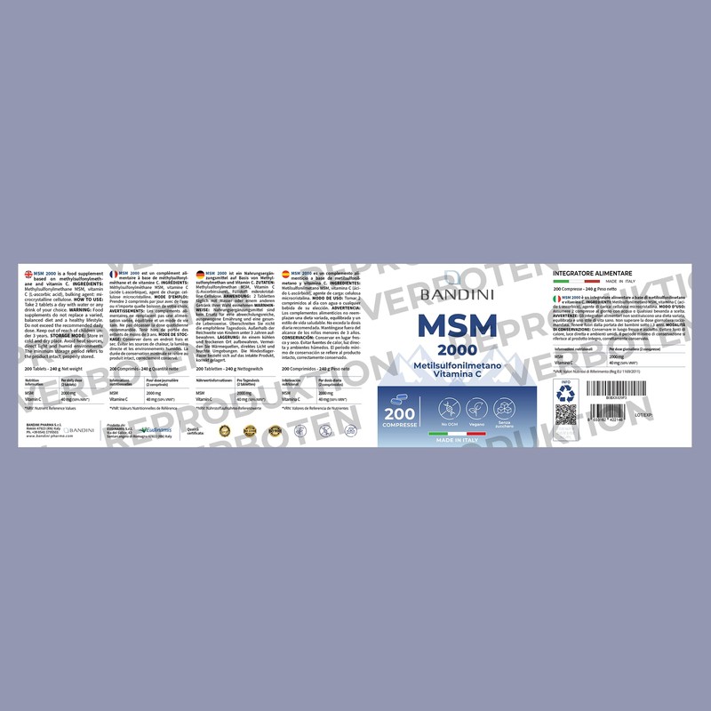 - Features: Methylsulfonylmethane (MSM) is an organic sulphur-containing compound that is often combined with vitamin C because of its positive synergetic effect. They help maintain the flexibility and strength of the joints, act as antioxidants that promote a higher level of physical energy and support the immune system. As they are both involved in collagen formation, they are also important for healthy skin, hair and nails