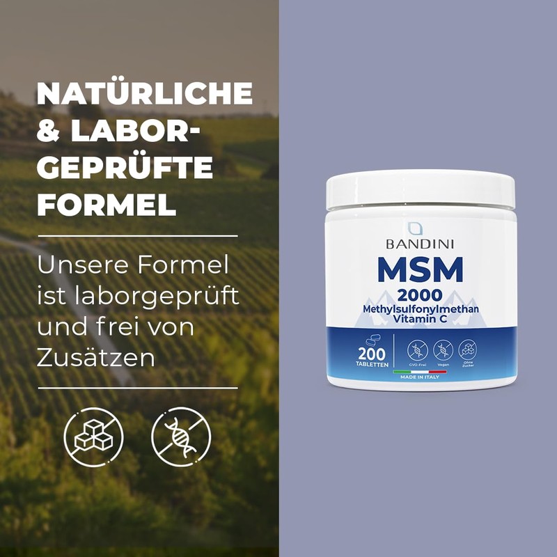Bandini® MSM | 2000 mg with 40 mg Vitamin C per Daily Dose | More Compact Methylsulfonylmethane Powder than Capsules | No Magnesium Stearate, High Dose, Vegan, No Additives, Laboratory Tested | 200