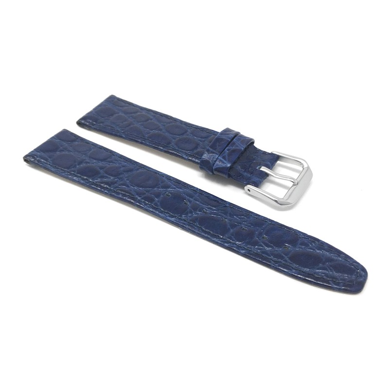 - 20mm Mens Italian Leather Watch Band Strap - Blue - Crocodile Pattern - Flat