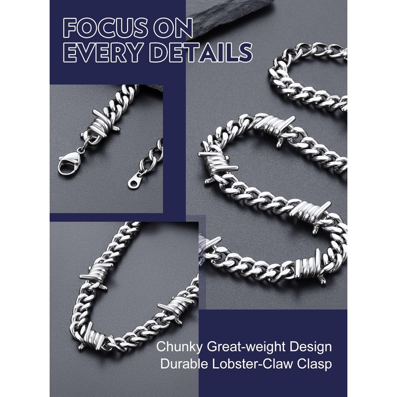 - 🖤 Trendy Design: Based on the classic cuban chain, add the gothic barbed wire thorns, be careful, it is chunky and heavy,and with toxic temptation, make you stands out in the crowded.