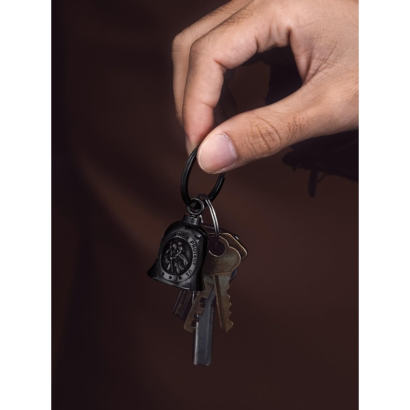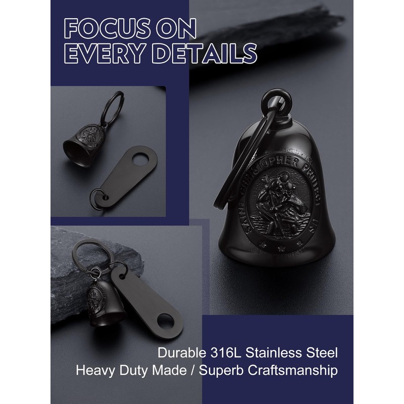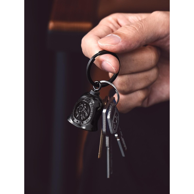 Bandmax Black Gremlin Bell for Men Motorcycle Key Chain Saint Christopher Key Chain for Biker Good Luck Safe Driving Amulet