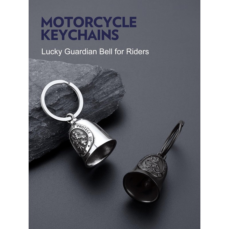 - 【Dimension & Size】30mm stainless steel key ring; Motorcycle hanger: length: 63mm, thickness: 2mm; Bell includes key ring: Length: 64.1mm, diameter of the lower circle of the bell: 27mm.