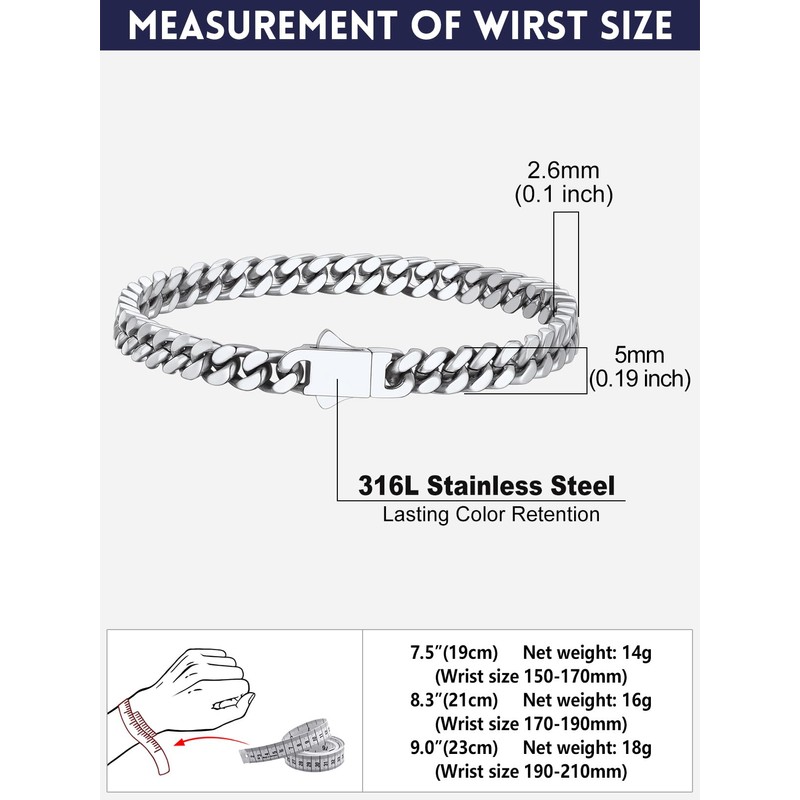 - Quality – stainless steel chain – curb chain men's bracelet consists of high-quality plating of silver, black or gold-plated colour. It sits comfortably on your wrist. No staining on clothing or skin.