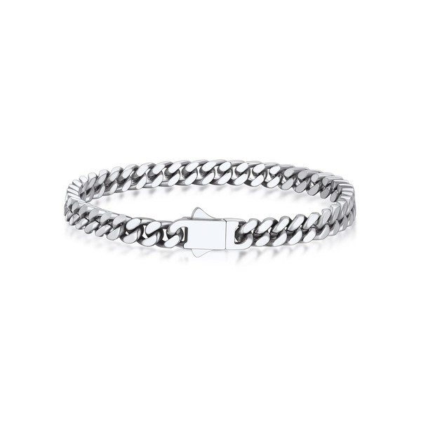 Bandmax Curb Chain Bracelet Men Women Stainless Steel Chain 5 mm Wide Chain Boy Girl Bracelet Cuban Chain Jewellery Accessory, 21 cm, Stainless Steel
