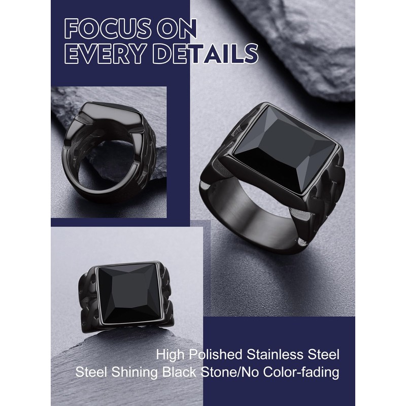 - Charming Stone Rings: 14mm Square cut black stone, a symbol of authority and confidence, charm of mystery, a wish for good health. The band design inspired from celtic knot, we create a look for it as two celtic knot chain with hollow detail, elegant and stylish.