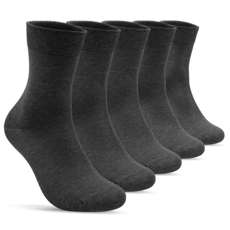 [banerise] 靴下 メンズ クルーソックス 5足セット 【ロングステープル綿95%・フラットなつま先】 消臭 ビジネス/スクール/カジュアル オールシーズン 男女兼用 ダークグレー 24-28cm