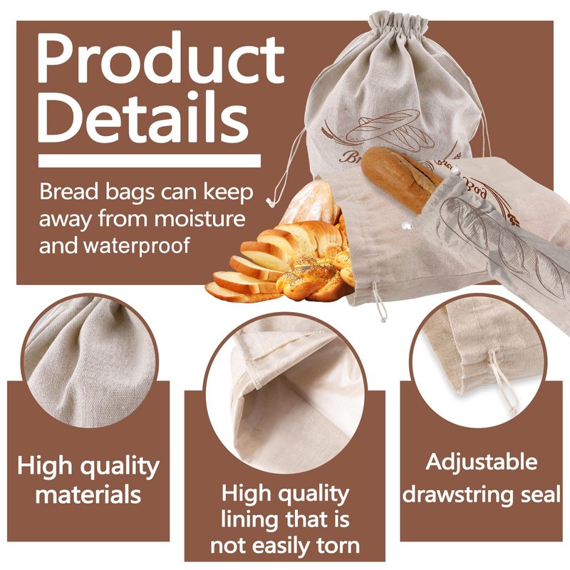 - 【Convenient Usage】Linen plastic bread saver bag has a drawstring close design, making it easy to put in and take out most kinds of breads. Its lining is waterproof and easy to clean, and it can serve you for a long time