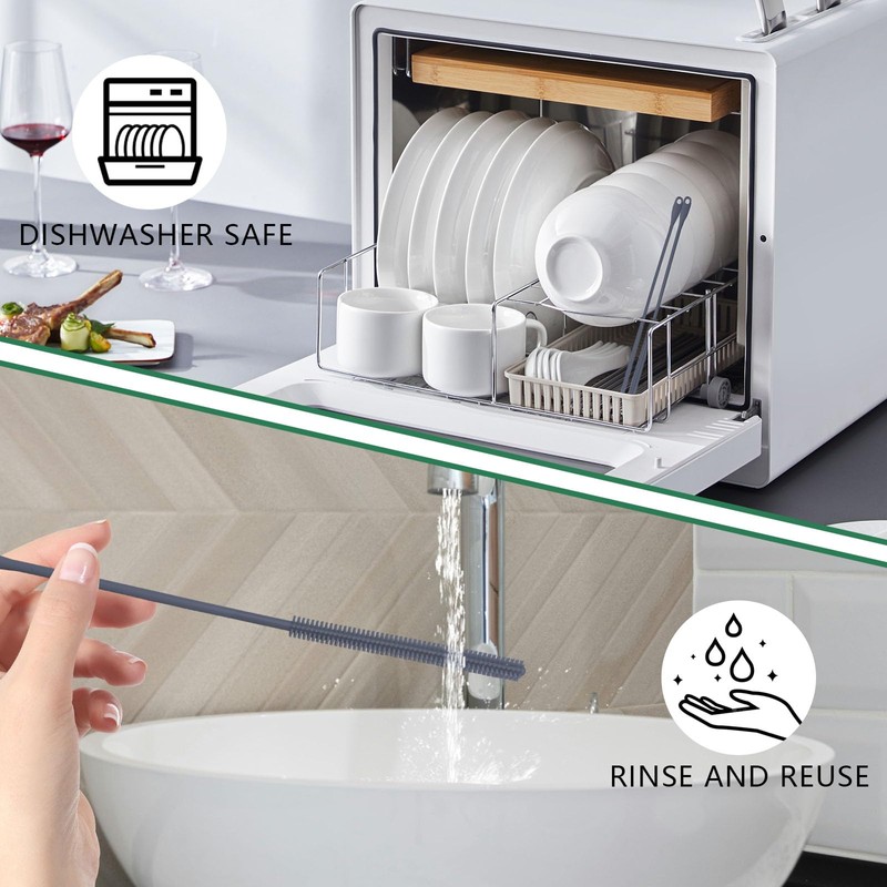 - 【Hassle-Free Cleaning】 Our gray silicone straw cleaner brush is effortless to clean and maintain. Simply rinse it with water or put it in the dishwasher for a thorough clean. It also features a hanging hole for space-saving storage.