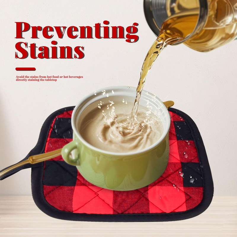 - 【What You Get】You will get 4 black and red checked hot pads, they are 9" x 7.8" (23 x 20 cm) in size, are big enough for both women and men to use freely and easily. They are multifunctional and will fit into your kitchen routine perfectly.