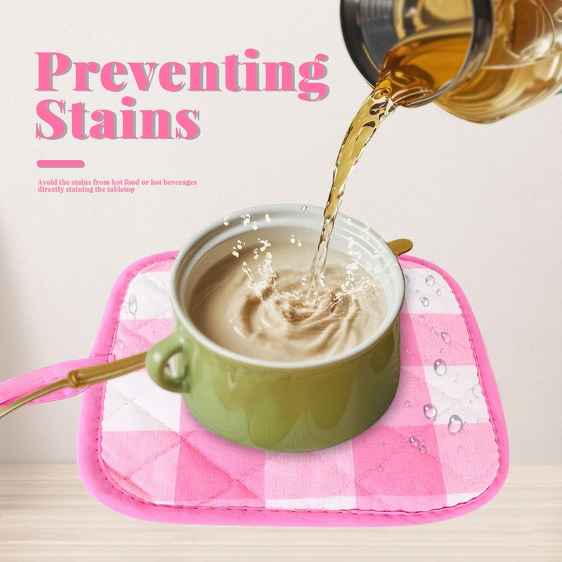 - 【What You Get】You will get 4 white and pink checked hot pads, they are 9" x 7.8" (23 x 20 cm) in size, are big enough for both women and men to use freely and easily. They are multifunctional and will fit into your kitchen routine perfectly.
