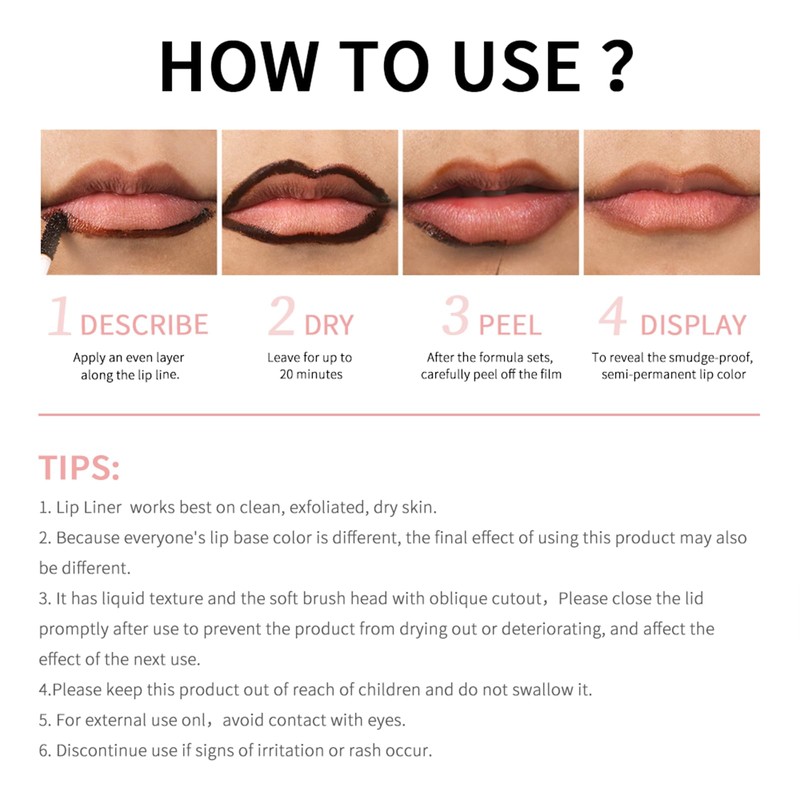 - Easy Peel-Off Application - Enjoy precision and control with a peel-off design that effortlessly shapes and defines. Simply apply, let dry, then peel for a stunning, clean lip contour that’s perfect every time without the need for touch-ups.