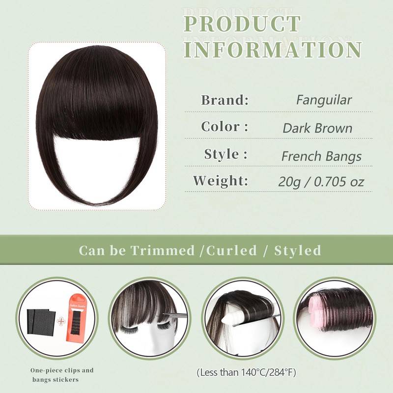 - Thicker Hair Volume:French fringes made from high quality synthetic fibres, looks like human hair. Bangs has enough width and volume to fit most people's foreheads, are perfect for adding thickness to your natural hair and hiding the hairline