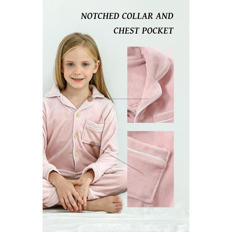 - Classic Pajamas: This kids pajamas set will never go out of style,loose-fit,the classic shirt collar,pants with elastic waist,all of this can keep kids comfortable as they sleep.A pair of pockets for kids' little toys and keep their hands warm