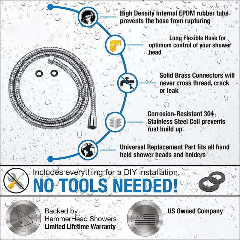 - 【Lightweight And Flexible】The shower hose is made on stainless steel covering allows maximum flexibility and no kinking. Make it easy and free for all shower.