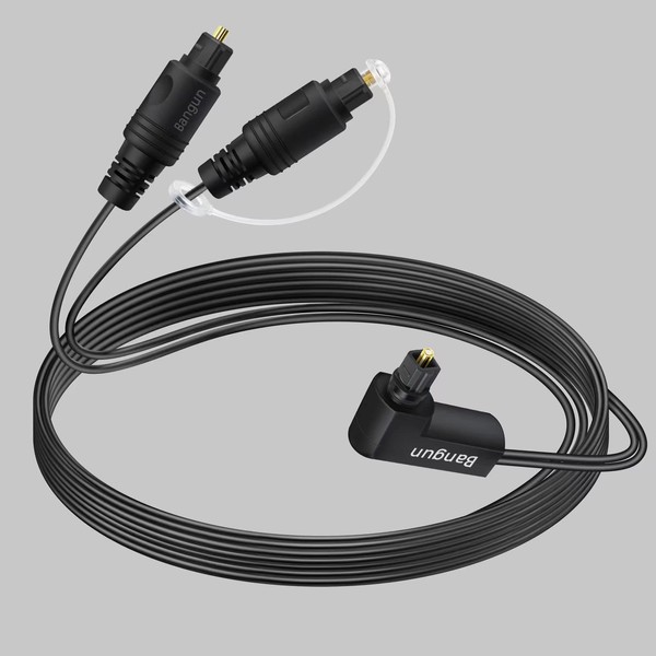 • Considerate Audio Optical Splitter Cable with Angled Plug - with 360 Degree free-rotating right angle plug, Bangun 90 degree optical splitter cable is ideal for audio installations where space is tight or limited. The rotating head works better for small spaces between wall and devices, like connecting a close wall mounted tv to your soundbar. Space saving.