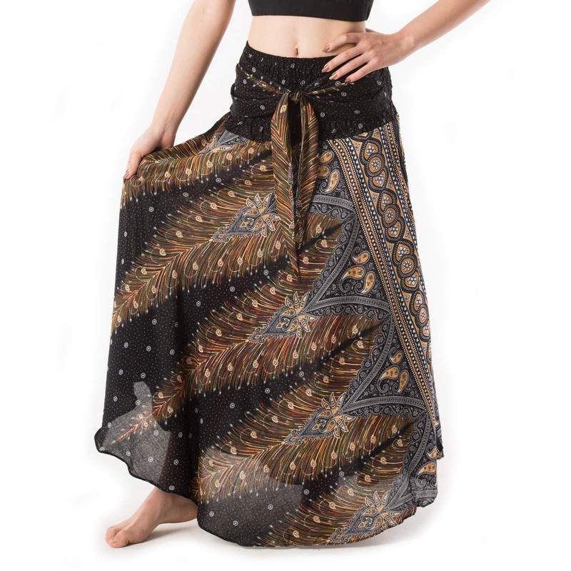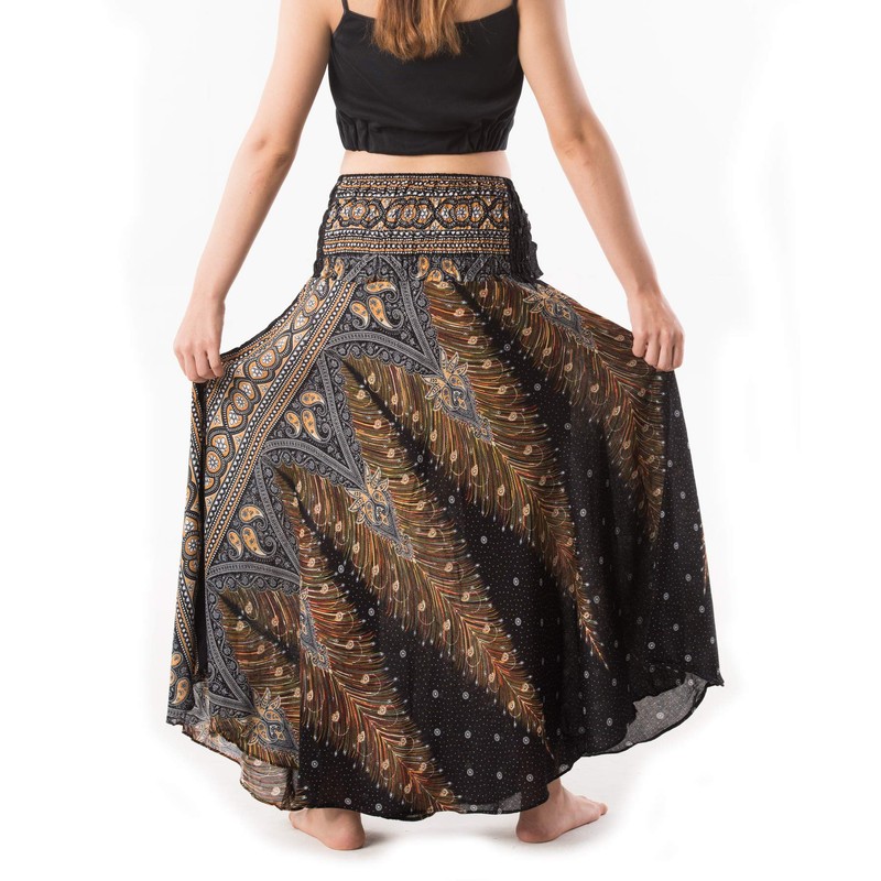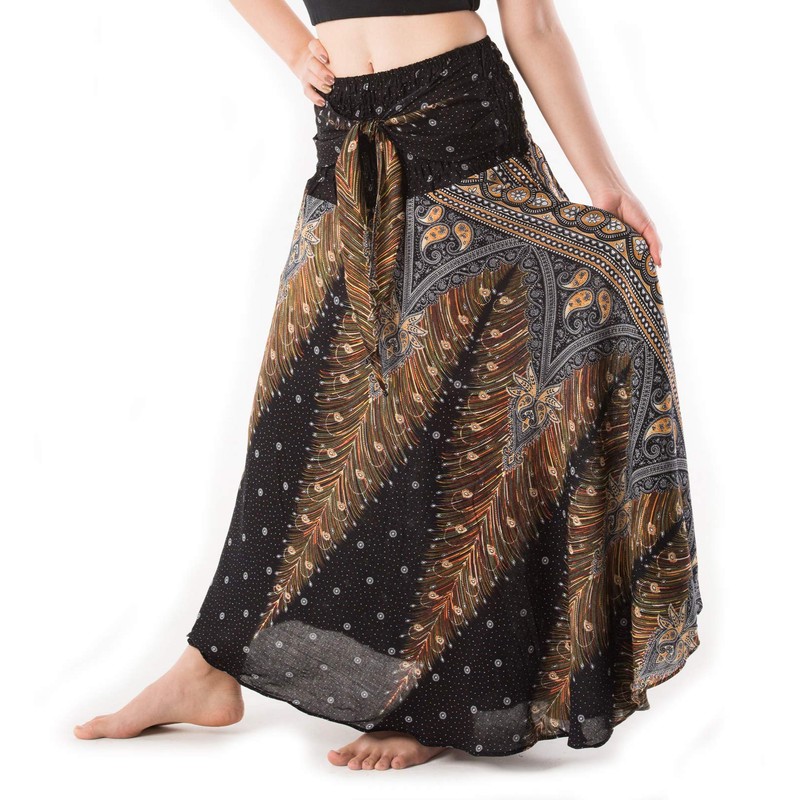 Banjamath® Women's Long Bohemian Style Gypsy Boho Hippie Skirt (M, Peacock Black)