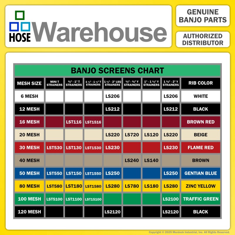 (1) Hose Warehouse Mesh Color Chart for Banjo Strainers