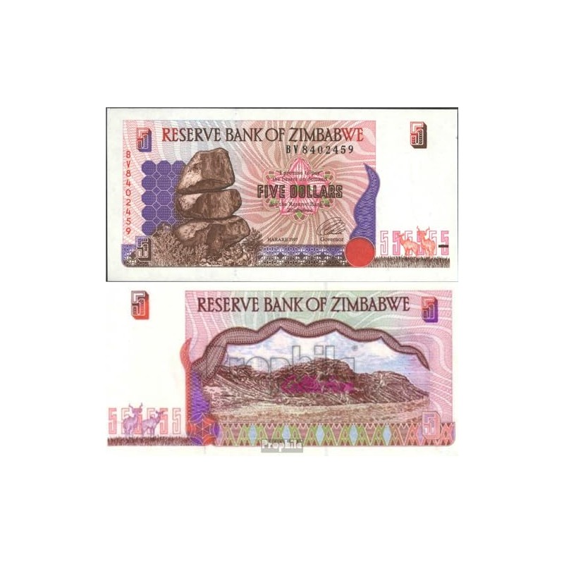 Banknote zimbabwe Pick-number: 5b uncirculated 1997 5 Dollars (money for collectors - no means of payment) plants/mushrooms