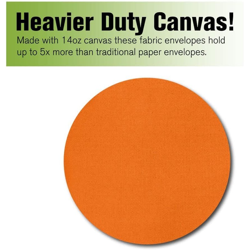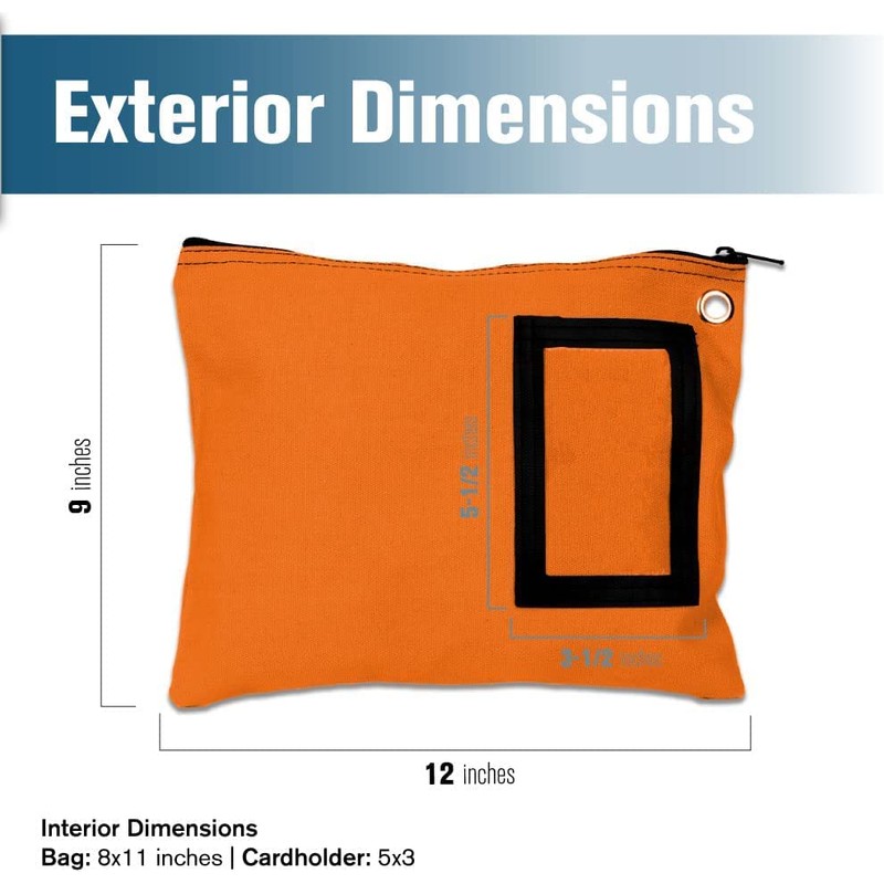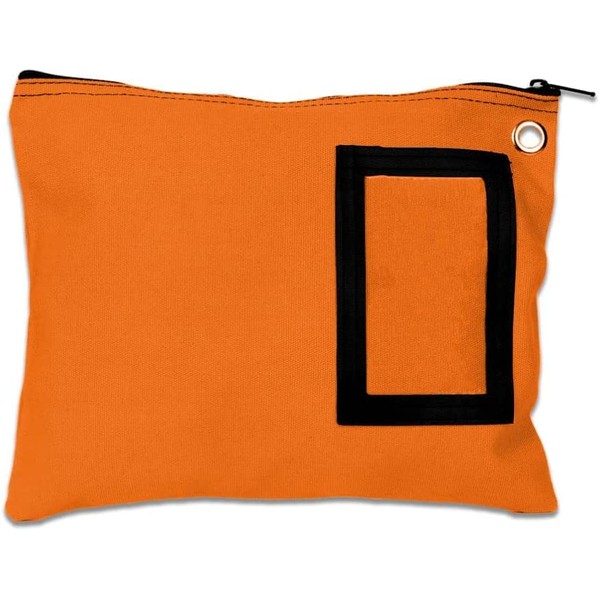BankSupplies Canvas Interoffice Mailer | 12” W x 9” H | Large Storage Bag | Orange | Grommet for Padlock & Zip Tie | 5” W x 3” H Framed Cardholder | Zipper Closure | Bank Bag