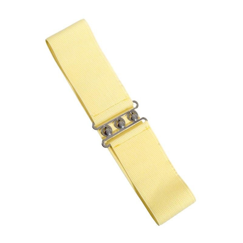 Banned Retro Vintage 1950's Elasticated Wide Nurse Belt - Pale Yellow (Large - UK 12-18)