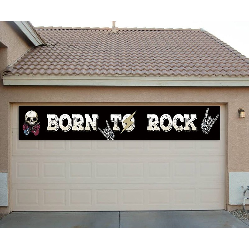 - Cartel grande de Born to Rock: la pancarta mide 10 x 1 pie. Es un diseño de tamaño perfecto, lo suficientemente grande para uso en interiores o exteriores. (Estacas no incluidas)