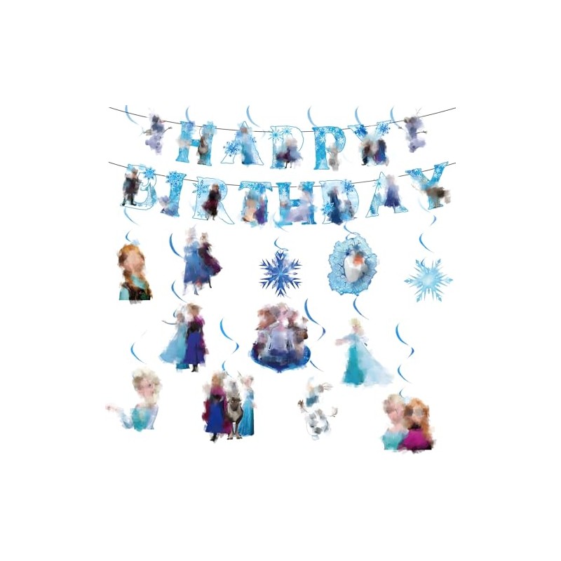 Banner1 Birthday Decoration Girls Children Blue Garland Birthday Banner Bunting Garland and Hanging Decoration Happy Birthday Banner Decorations, Snowflakes Theme for Children's Birthday Party
